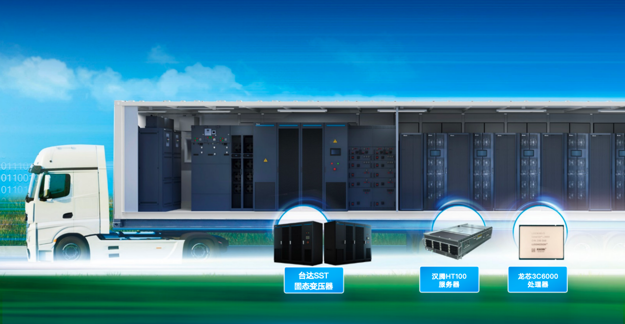 3月28日,龙芯中科与汉腾科技、台达联合宣布重磅发布集装箱式SST(固态变压器)直流移动智算中心,发布活动于台达吴江制造基地举行。这款全新产品以台达SST固态变压器为核心能源支撑,深度集成龙芯3C6000自主CPU、国产AI加速卡与汉腾HT100服务器,打造出从电网到芯片的全栈国产算力基础设施解决方案。