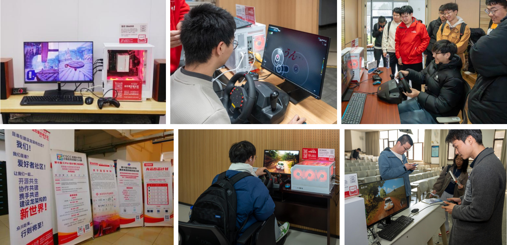 此外,活动现场设置了龙芯3B6000电脑、国产操作系统及多款游戏体验区,供同学们近距离感受国产软硬件的实际性能与操作体验。