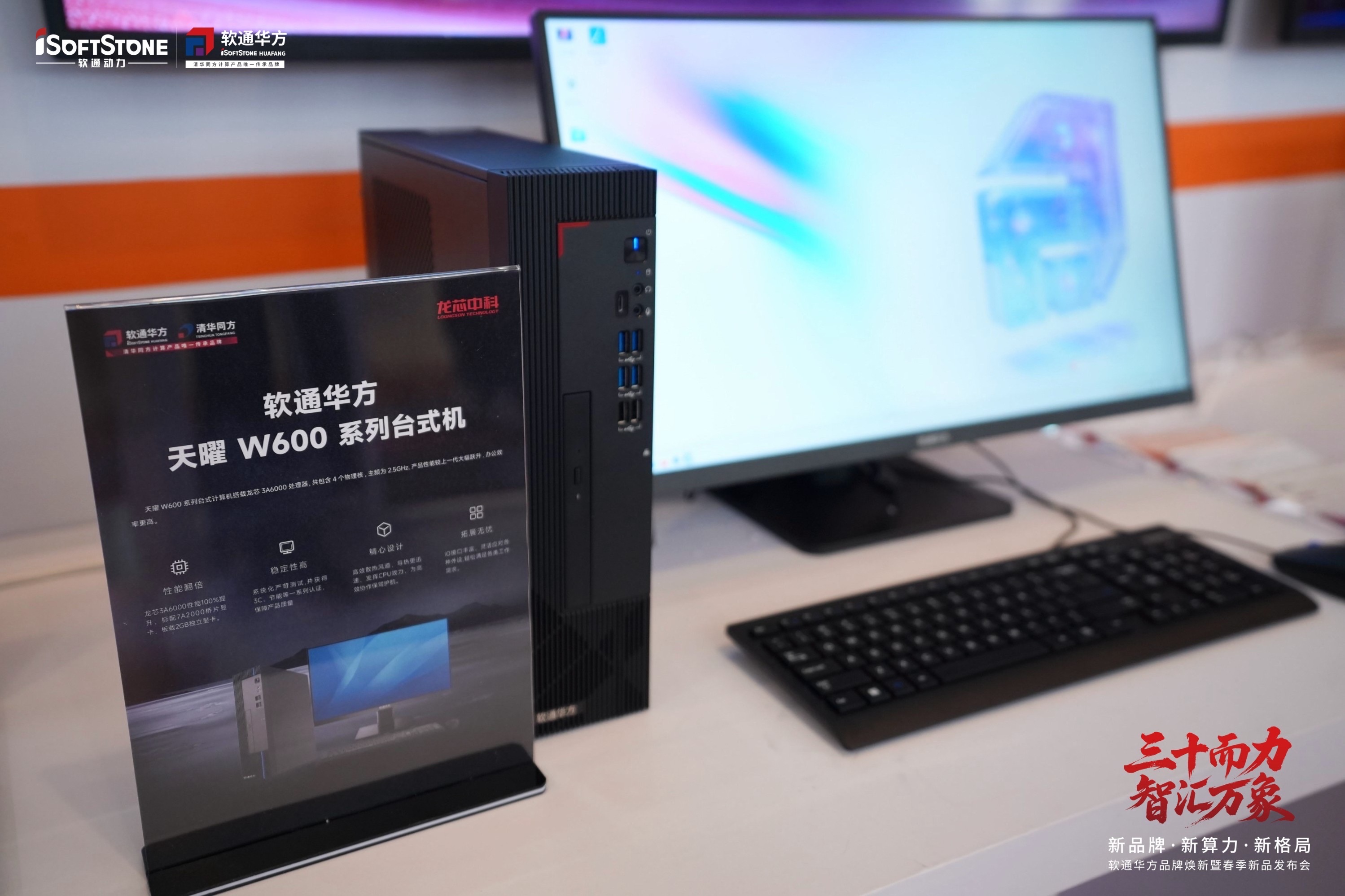 4月22日,"三十而力,智汇万象——新品牌・新算力・新格局" 软通华方品牌焕新暨春季新品发布会在北京隆重举行。作为清华同方计算产品唯一传承品牌,软通华方正式迈入品牌焕新战略升级新征程。会上,软通华方重磅发布基于国产龙芯3B6000M处理器的超锐T40-L60B系列笔记本,同步推出搭载龙芯3A6000处理器的天曜W600系列台式计算机,以全栈自主创新实力,为金融、党政、运营商、能源、交通等关键行业注入高性能、高安全的信创算力新动能。